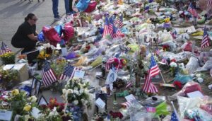 shooting memorial flowers flags charlie kirk turning point usa phoenix us gun violence AP PHOTO 091725
